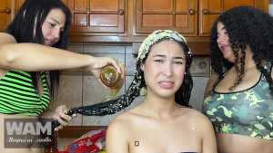 Nicole is a very cute model who looked like she was ready to just lie down and take her humiliating mess. Playfully she writhes in the goop post head wamming and by the end she's covered head to toe. I was shocked at how quickly she was covered and she refrained from wiping every few seconds, just letting the mess cover her and conservering her breath between pours. I highly recommend this one.