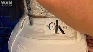 The sexy, glamorous Patty was dared to destroy her beautiful new white Calvin Klein pants. She couldn't say no, but she was hoping they could be white again. However, after sitting on some large, colorful pies, a chocolate cake, and then enduring strawberry syrup, chocolate frosting, and chocolate cake mix poured over her head, I don't think that's going to happen.