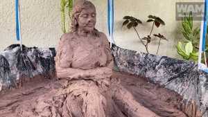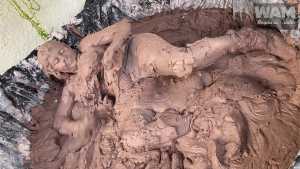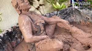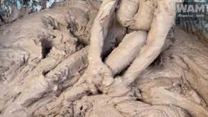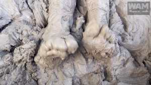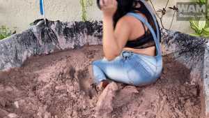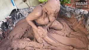 How fun it is to have to go into the pit to stir all the clay and hydrate it. I couldn't miss this opportunity to record the moment so you can join me in the fun.